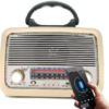 Rádio estilo retrô vintage com entradas para pen drive(usb) e cartões de memória(sd), muito prático, compacto e bonito. Com botão de sintonia e volumes giratórios que facilitam os ajustes. Com 9 bandas de sintonia sendo FM, AM e sete faixas de ondas curtas(SW). Possui alça para transporte e antena telescópica. Funciona através de energia elétrica doméstica(AC/DC), pilhas tradicionais pequenas(AA) e bateria recarregável interna.